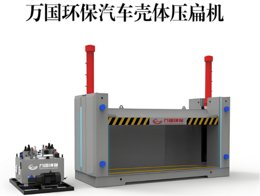 进行负载试机:放入报废车体,进行低压力试压,逐步增加到额定压力。检查设备有无异常振动、泄漏,压力是否达标,电气控制系统是否灵敏可靠。
